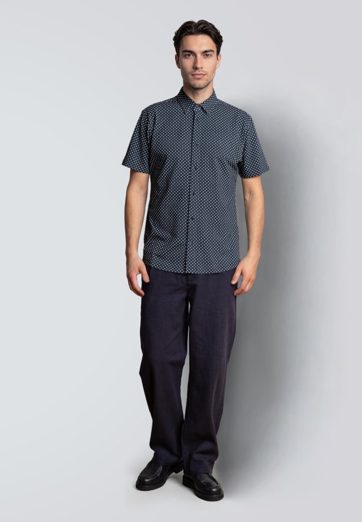 Nafn Clean Cut Formal Stretch Shirt SS Navy/E - S